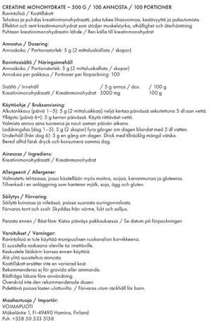 Kreatiinimonohydraatti / Kreatinmonohydrat 5000 mg 100 g